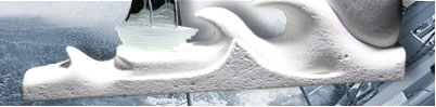 Here the glass designer's particularity is his manner of glass refinement in combination with other precious materials. Having three different professions and thus being able to work as a cabinet maker and pattern maker, as a specialist for glass refinement, and as a glass artist he combines these three professions of his with immense ingenuity, professionalism, and flexibility.