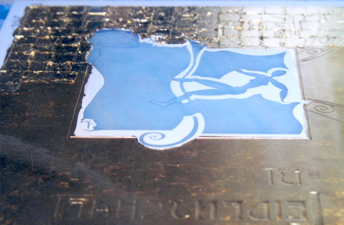 The gilding of glass in combination with his deep sandblasting is the most outstanding distinguishing feature of glass artist Jens Banerjee, for which he was awarded the "Deutscher Innovationspreis" (German Prize of Innovation) by the "Bundesverband der Deutschen Glasveredler" (German association of craftsmen and artists specialized in glass refinement). With a leaf gilding of 24-carat gold the glass refinement, an impressive process in itself, receives exactly the rank of quality that makes his glass refinement in combination with deep sandblasting unique.