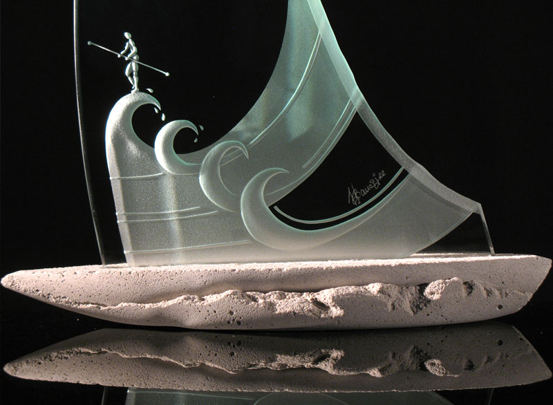 Die Besonderheit des Glasdesigners liegt hier in seiner Art der Glasveredlung in Kombination mit anderen edlen Materialien. Dabei kombiniert er mit viel Einfallsreichtum seine 3 Berufe; den des Möbel- und Modelltischlers, den des Glasveredlers und den des Glaskünstlers mit Professionalität und Flexibilität.